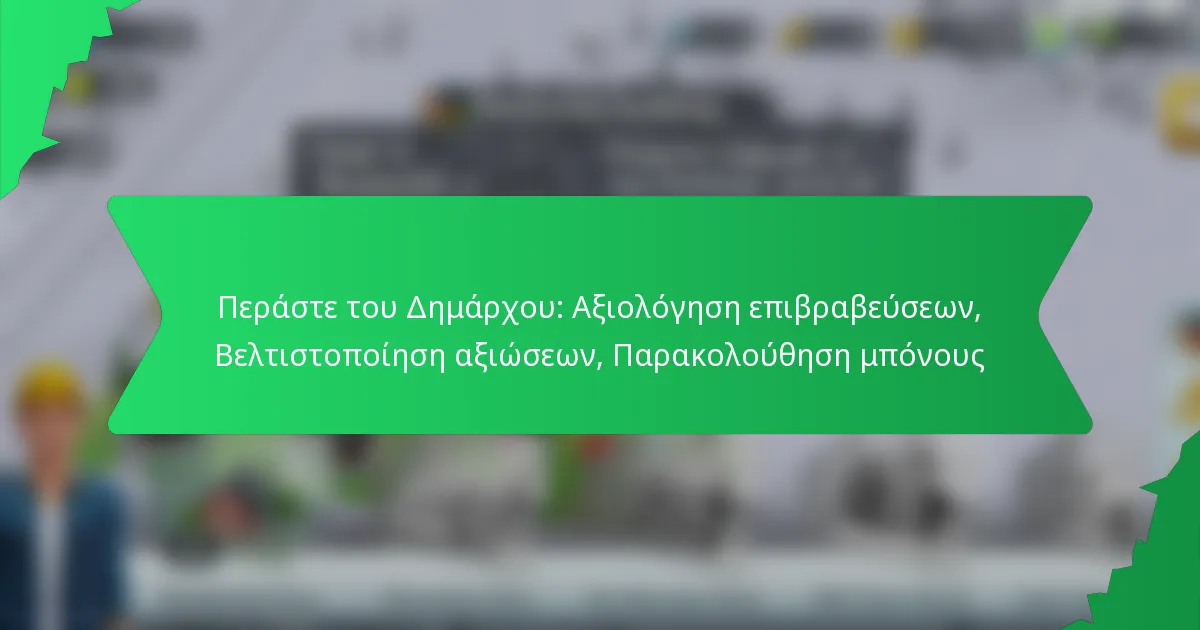 Η Κάρτα του Δημάρχου είναι ένα πρόγραμμα επιβραβεύσεων που στοχεύει στην ενίσχυση της συμμετοχής της κοινότητας προσφέροντας στους συμμετέχοντες διάφορα οφέλη για την εμπλοκή τους σε τοπικές πρωτοβουλίες. Η αξιολόγηση των επιβραβεύσεων βασίζεται σε συγκεκριμένα κριτήρια που διασφαλίζουν τη σχετικότητα και την κίνητρο, ενώ η βελτιστοποίηση των αιτήσεων βοηθά στη μέγιστη αξιοποίηση των οφελών και στη βελτίωση της εμπειρίας του χρήστη. Κατανοώντας τις διαδικασίες αξιολόγησης και αίτησης, οι συμμετέχοντες μπορούν να εκμεταλλευτούν πλήρως τα πλεονεκτήματα του προγράμματος.